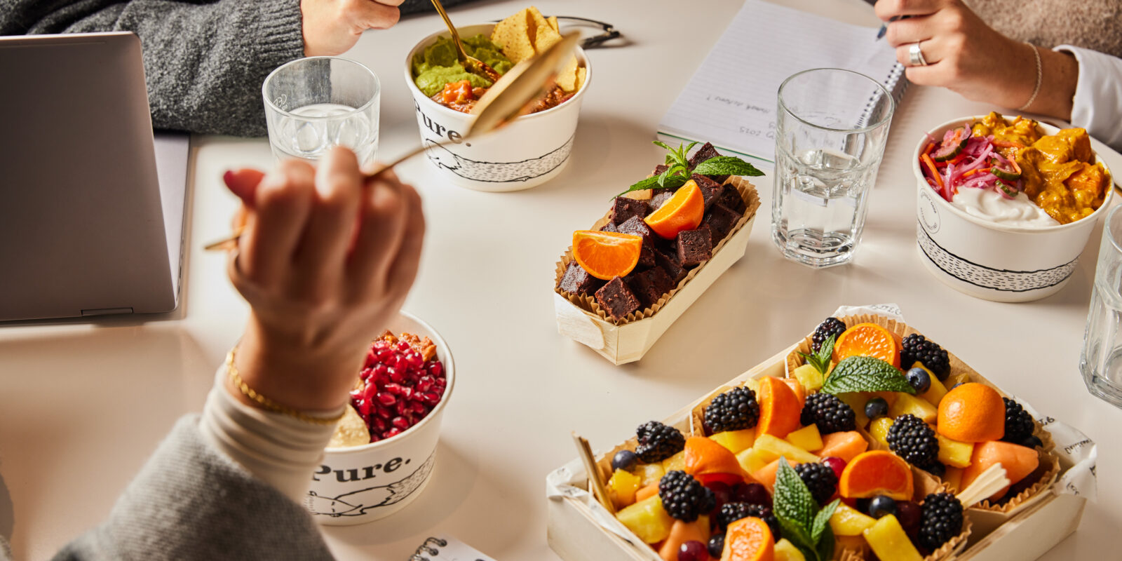 Pure delivers directly to you. Do you regularly order individual items for lunch for everyone in your office? Do you want to treat your team to Bircher pots, fruit salads and pastries for breakfast? Or maybe you have a short-notice requirement to feed a lot of people? (we know this happens sometimes!). We’ve got you covered.
