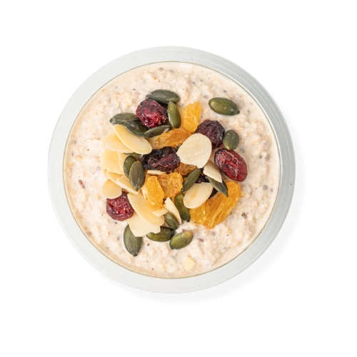 Wildfarmed regenerative oats, Greek-style yoghurt, mixed nuts, dates & seeds.