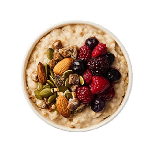 Wildfarmed regenerative oats soaked and cooked with oat milk, served plain or with your choice of toppings.